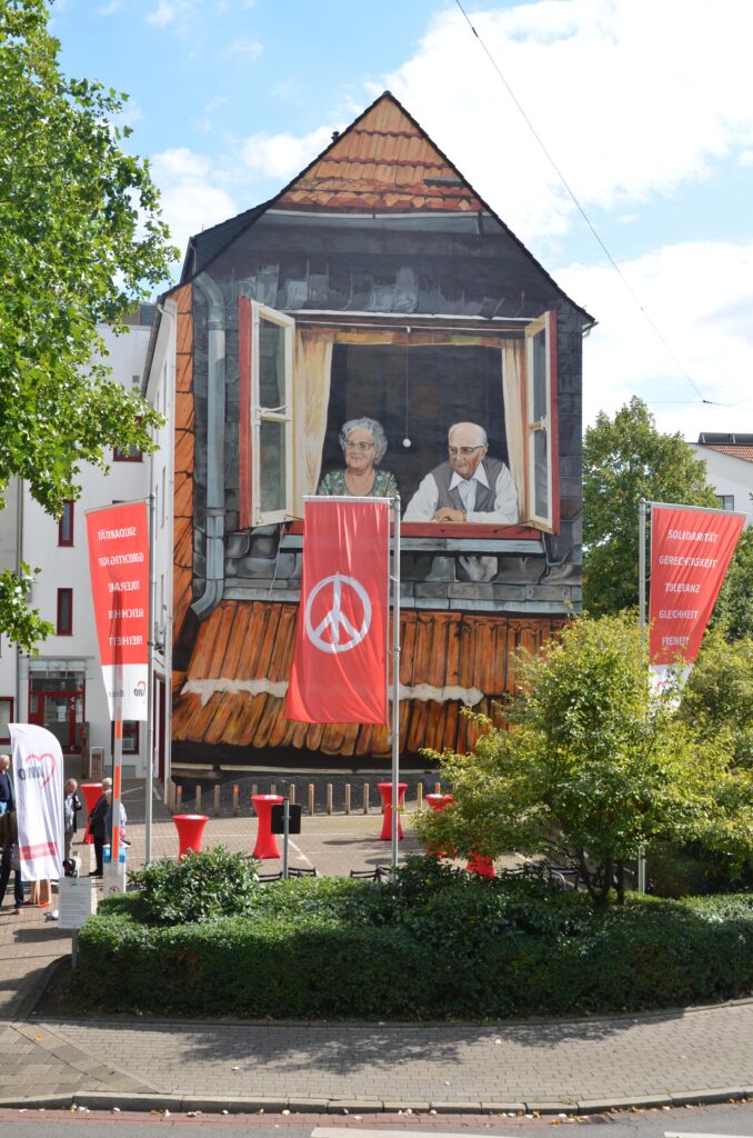 Eines der berühmtesten Wahrzeichen der Stadt wird in diesem Jahr 50: Das Wandbild am Rembertikreisel, das im Volksmund „Oma-und-Opa-Wandbild“ heißt und die Geschäftsstelle der Arbeiterwohlfahrt Bremen ziert.
